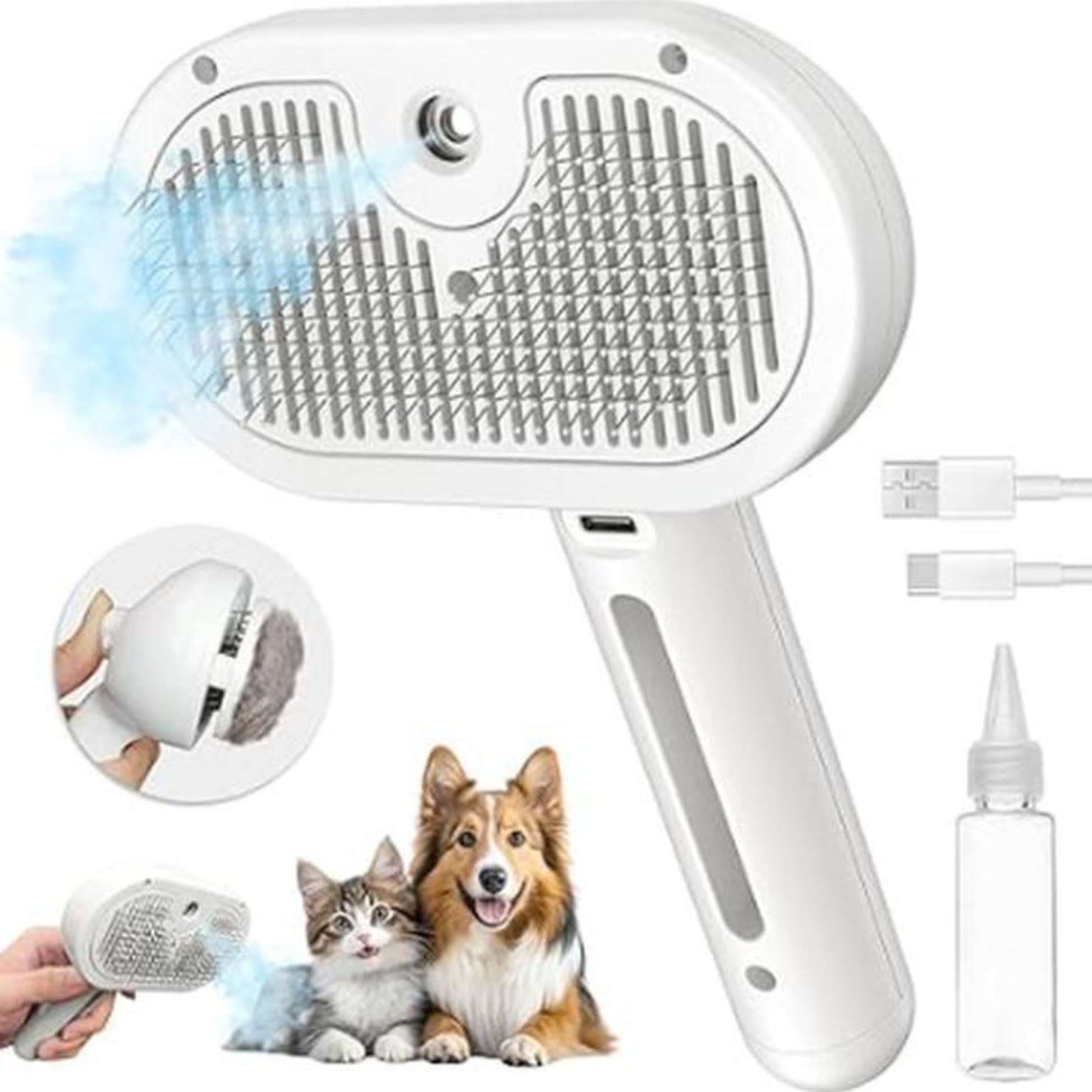 Cepillo de pelo 3 en 1 para perros y gatos: cepillo eléctrico para limpieza de mascotas, cepillo en aerosol de vapor, peine de masaje para depilación y cepillo antienredos.